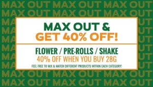 Max Out Deal 40% Off When you purchase 28g of Flower